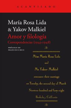 Hay que presumir que quien hoy esté leyendo esta página sabe cuando menos que María Rosa Lida fue la más sabia, la más lúcida, la más admirada estudiosa de la antigua literatura española en la segunda mitad del siglo pasado, y probablemente de cualquier época. Es menos seguro que sepa también que Yakov Malkiel se contó entre los más solventes expertos en la historia de nuestra lengua, en especial en cuanto rastreador de etimologías. en cualquier caso, ninguno de esos conocimientos es imprescindible: las cartas que configuran el presente libro pueden muy bien leerse como una novela de amor, a ratos rosa, y como el relato de una seducción y de una entrega, con final feliz . Francisco Rico