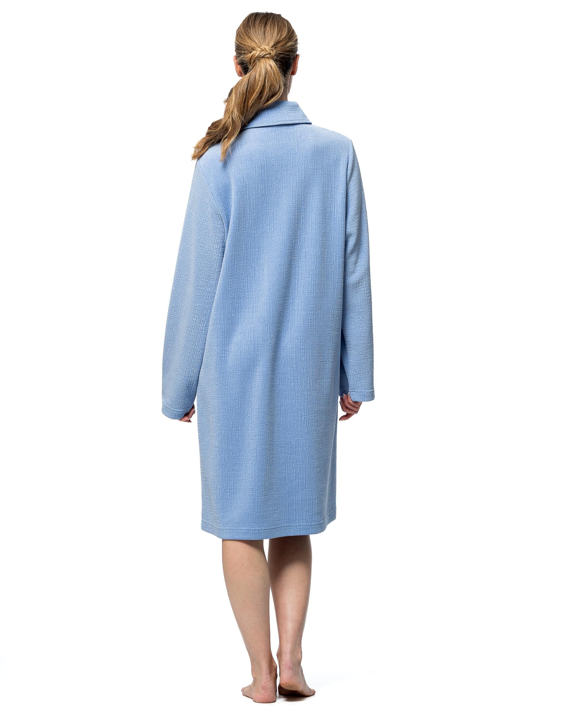 Bata de mujer SEÑORETTA en cálido tejido jacquard, con cierre de botones y cuello clásico. Su textura suave y diseño sencillo la convierten en una prenda práctica y elegante para estar en casa. Con bolsillos grandes para mayor comodidad. Ideal para los días fríos.