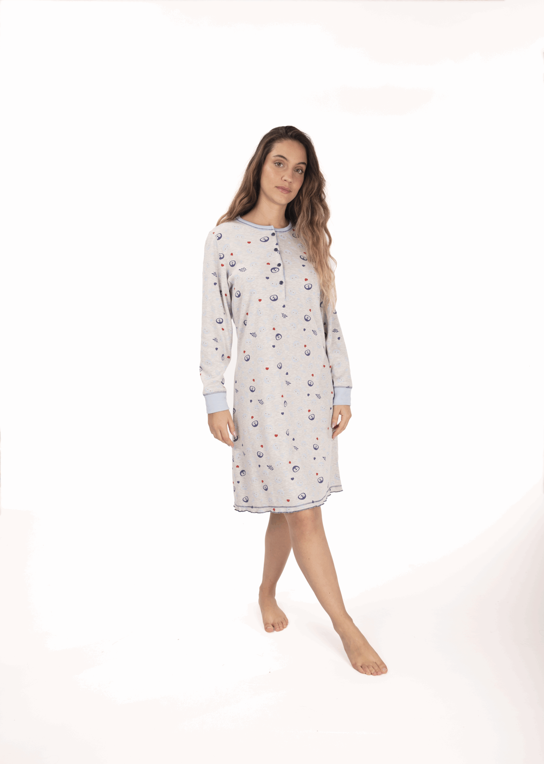 Escote con tapeta de 4 botones, ideal para lactancia.